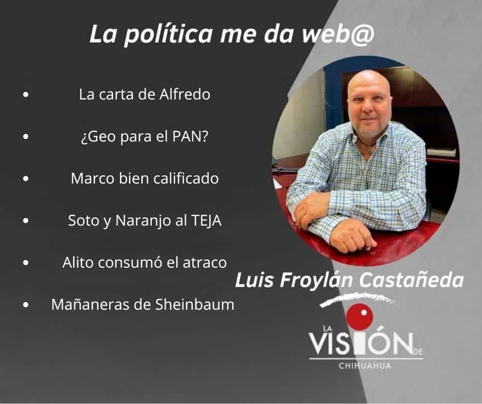 Mario Vázquez picuetió sobre la decisión del CEN del PAN en relación al género en los relevos de comités directivos estatales. En Chihuahua y otros trece estados, según el senador electo por segunda mayoría, la dirigencia quedó reservada para mujer. De ser así no veo más que a dos, Daniela Álvarez y Geo Bujanda. Sería decepcionante para muchos panistas que Daniela recibiera la dirigencia, siendo que perdió estrepitosamente la elección, ni las manos metió en Juárez. Geo merece mucho más esa oportunidad, es una pirinola para trabajar, inteligente y muy comprometida con su partido. Veremos que resuelve Maru Campos, pues eso de que el CEN decidió es un decir, no se hubiese llegada a tal acuerdo sin la opinión de la gobernadora. ¿Y Gabriel Díaz? En su casa hace menos daño, en la pasada elección demostró incompetencia absoluta.