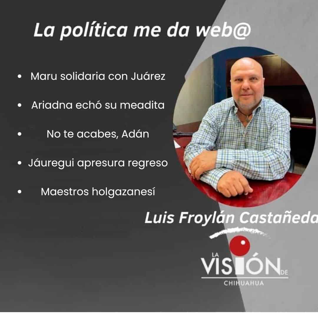 Con el tema de los migrantes Ariadna Montiel pudo ir a Tijuana, Reynosa, Matamoros o cualquier frontera. Eligió Juárez para estar unos días, disque al pendiente de las deportaciones. Es el pretexto para echar su meadita y marcar territorio, confirmando lo que mucho se ha dicho de meses atrás, que se encaprichó con Chihuahua y quiere la gubernatura. Si realmente decide jugarla, abusados los dos acelerados más visibles de su partido, Ariadna si trae parque con qué quererlos y se mueve con fuerza propia.