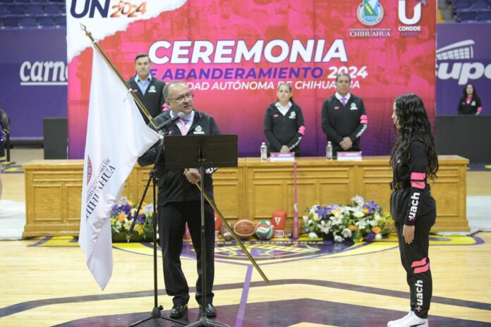 Chihuahua.- Un contingente de 321 elementos integrados por atletas, staff y entrenadores fueron abanderados por el Rector, Maestro Luis Alfonso Rivera Campos para representar a la UACH en la Universiada Nacional 2024, próxima a celebrarse en la Ciudad de Aguascalientes del 11 al 29 de mayo.