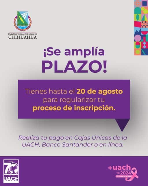 “¡Se amplía el plazo! Tienes hasta el 20 de agosto para regularizar tu proceso de inscripción”, dijo ahora la UACH por medio de redes sociales.