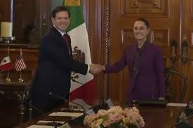Ciudad de México.- El Secretario de Estado de los Estados Unidos, Marco Rubio, arribó a Palacio Nacional para reuinirse con la Presidenta Claudia Sheinbaum.