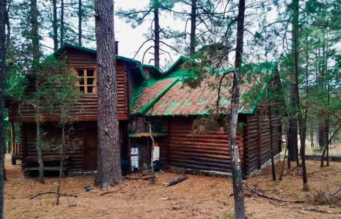 Ubicada en el corazón de la Sierra Tarahumara, la construcción de estilo rústico se encuentra rodeada de abundante vegetación y, de acuerdo con medios locales, se asienta sobre un área natural protegida.