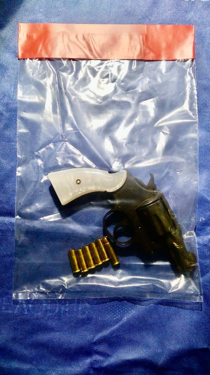 Voluntariamente, una persona salió de una vivienda y entregó a los policías un arma de fuego tipo revolver, calibre .38 especial, marca Smith & Wesson con un cartucho útil en su interior y 5 percutidos, la cual fue debidamente asegurada y puesta a disposición de la Fiscalía General de la República.