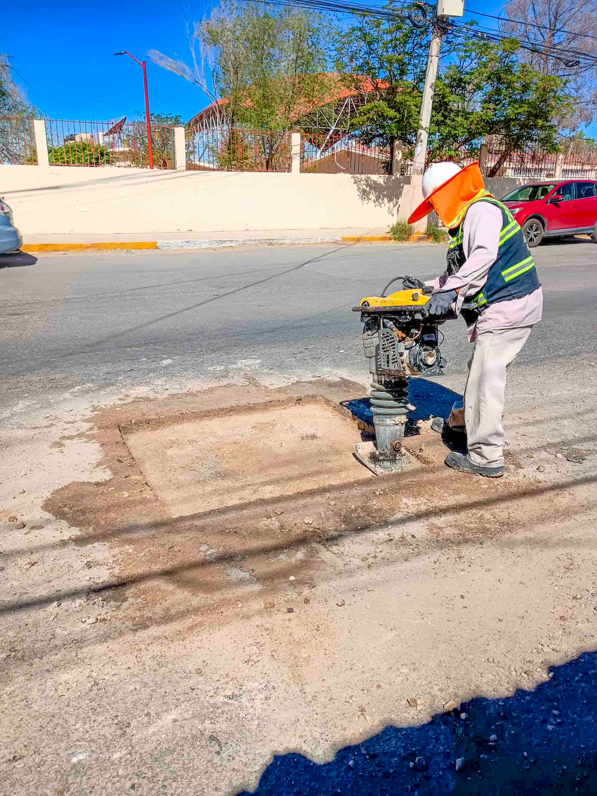 “Durante varios días trabajamos en el bacheo de 16 calles, aplicando aproximadamente 200 metros cuadrados de asfalto. Nuestro objetivo es que toda esta área cuente con mejores condiciones, ya que también se están instalando nuevas líneas de drenaje y tomas de agua”, explicó.