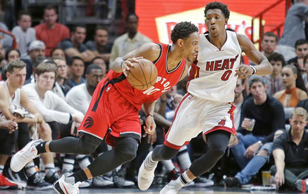 Miami— DeMar DeRozan anotó 40 puntos en la primera vez que ha aportado tal cantidad en juegos consecutivos, y los Raptors de Toronto registraron su 19na remontada de doble dígito de la temporada al vencer anoche 101-84 al Heat de Miami.