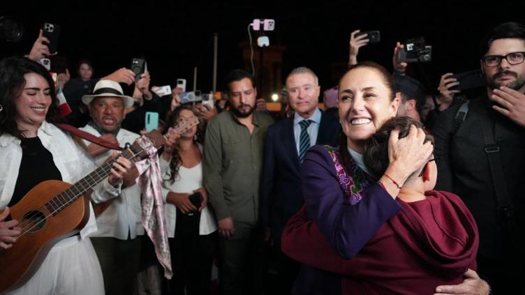 Antes de arribar a Barcelona, hizo una escala en Madrid, donde también fue recibida por mexicanos que radican en España con muestras de apoyo como pancartas, serenata y más.