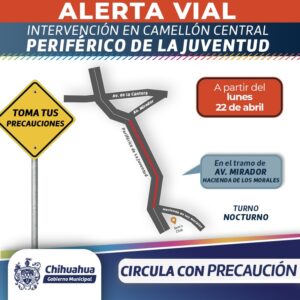 Asimismo, recordó que a partir del próximo 22 de abril se iniciará una intervención en el Periférico de la Juventud, en el tramo de la avenida Mirador y Hacienda Los Morales, para colocar una barrera central en el camellón y brindar así mayor seguridad a los conductores.