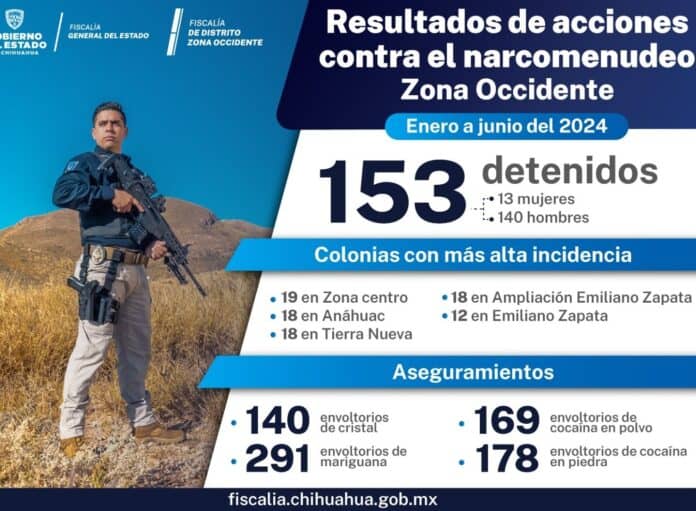 La Fiscalía de Distrito Zona Occidente, a través de la Unidad de Investigación de Narcomenudeo, detuvo en los primeros seis meses del 2024 a 153 personas en posesión de distintas dosis de droga.