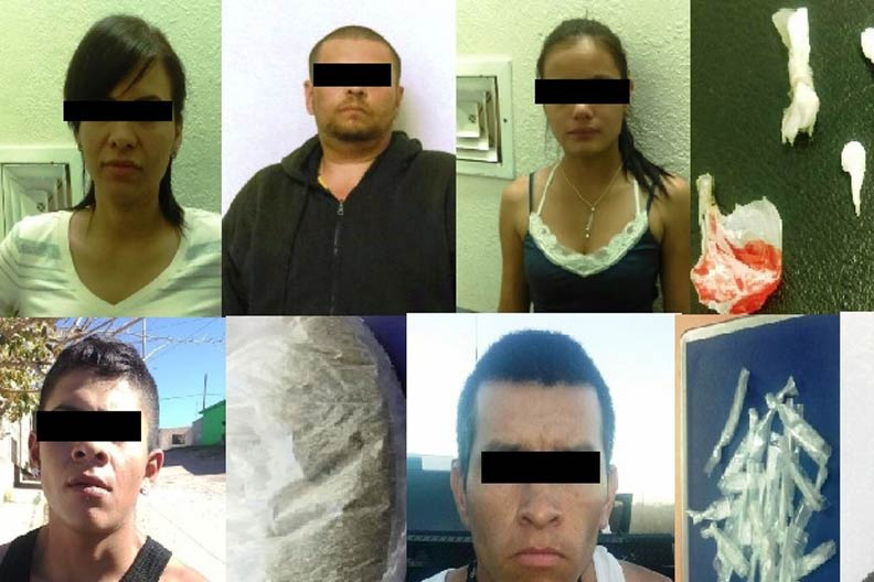 Agentes de la Policía Estatal División Investigación, capturaron en diferentes hechos a siete personas por realizar actividades de narcomenudeo en varias colonias de Chihuahua, a quienes les decomisaron diferentes tipos de drogas.