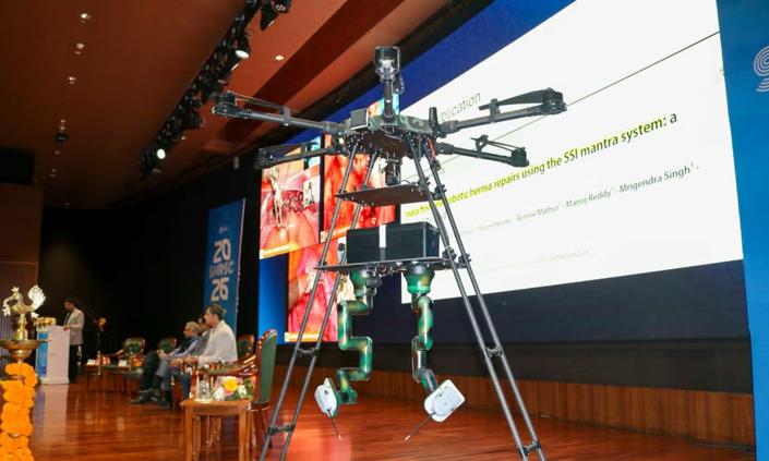 Desarrollado por la empresa SS Innovations, el robot denominado SSi Vimana Aero cuenta con brazos robóticos de alta precisión capaces de replicar movimientos humanos. Equipado con herramientas quirúrgicas, el dron puede estabilizar a un paciente, controlar hemorragias e incluso realizar suturas bajo el mando remoto de un cirujano.