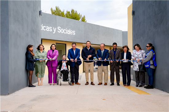 El alcalde Marco Bonilla encabezó el corte de listón del Espacio Seguro y Adaptado en la Facultad de Ciencias Políticas y Sociales de la Universidad Autónoma de Chihuahua (UACH), una obra que mejora la accesibilidad, seguridad y movilidad para la comunidad estudiantil, especialmente para alumnas y estudiantes con discapacidad.