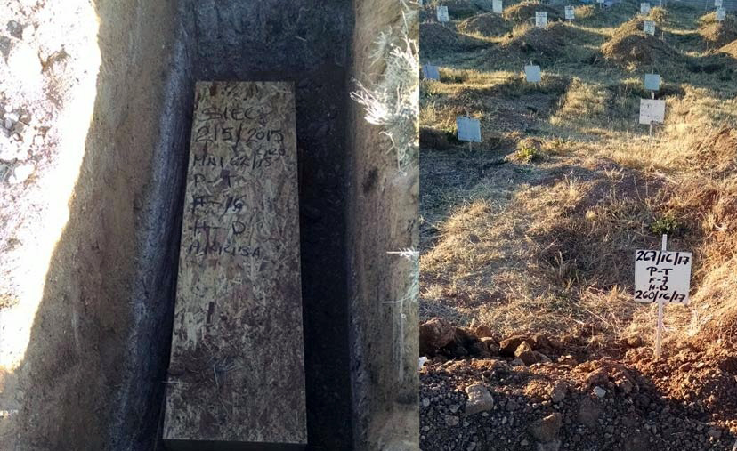 Como parte de los protocolos del área forense de la FGE, cada cuerpo es inhumado individualmente, con su respectivo perfil genético y número de control en el Sistema de Ingreso y Egreso de Cadáveres (SIEC) para una posterior una identificación o reclamación familiar.