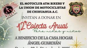 Integrantes del Moto Club ATM Bikers y de la Unión de Motociclistas de Chihuahua, A.C invitan a la ciudadanía en general a participar en la 12 colecta Anual para niños y niñas a beneficio de la Casa Hogar Ángel Guardián.