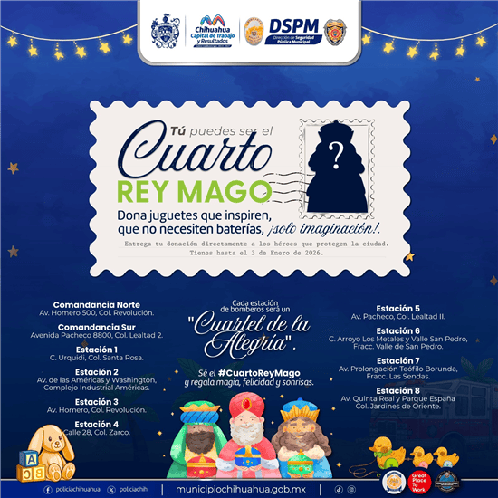 Elementos del H. Cuerpo de Bomberos y Rescate, dieron a conocer que a partir de hoy 1 de diciembre inició la colecta anual de juguetes bajo el lema, “El Cuarto Rey Mago”, donde invitan a la ciudadanía a participar con la donación de juguetes que se entregarán a niñas y niños de zonas vulnerables.