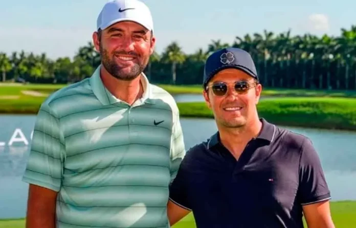 El piloto mexicano Sergio Pérez jugó este miércoles en la ronda previa del Pro-Am del Cadillac Championship 2026 junto al golfista 1 del mundo, Scottie Scheffler.