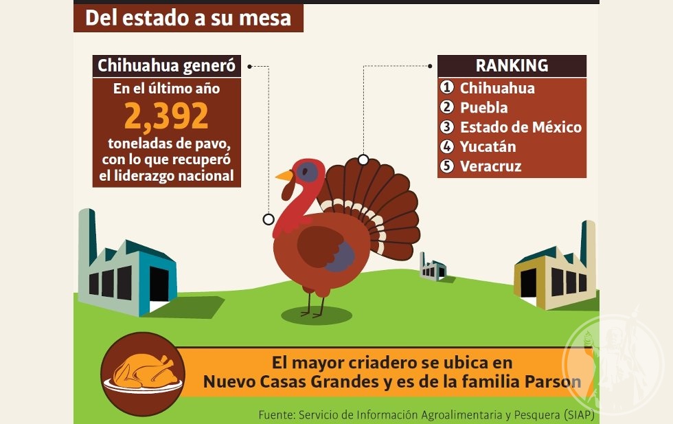 En Chihuahua sólo el municipio de Nuevo Casas Grandes produce este tipo de carne tanto para consumo local como para exportación, por lo que la mayoría de los pavos que se consumirán en la cena de Acción de Gracias y en las fiestas decembrinas son de esta región.