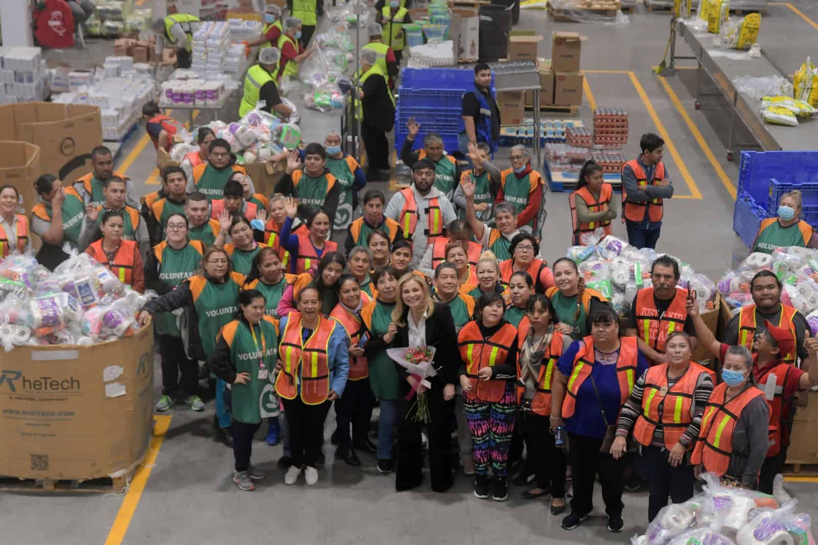 En el lugar, la mandataria estatal se unió a la cadena para cargar los camiones con los paquetes alimenticios, para su posterior distribución a familias en situación de vulnerabilidad. Además, conoció de primera mano la logística que tiene el Banco para la distribución de estos apoyos.