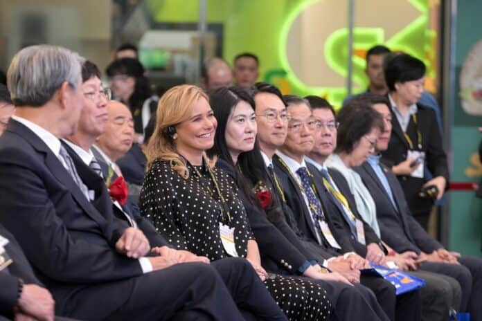 La gobernadora Maru Campos fue invitada de honor en el 50 aniversario de la Feria y estuvo en primera fila acompañada del Chairman, Richard Lee de TEEMA, el Chairman de Foxconn Young Liu, el Chairman de TAITRA, James C.F. Huang.