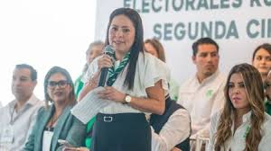La presidenta nacional del PVEM, Karen Castrejón Trujillo, informó que, “A petición de la gente”, el partido verde competirá en solitario en SLP.Foto: Omar Hernández.