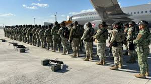 La Secretaría de la Defensa Nacional (Defensa) informó que el despliegue de tropas, incluidos 270 elementos de la Brigada de Fusileros Paracaidistas, fue en tres aeronaves de la Fuerza Aérea.