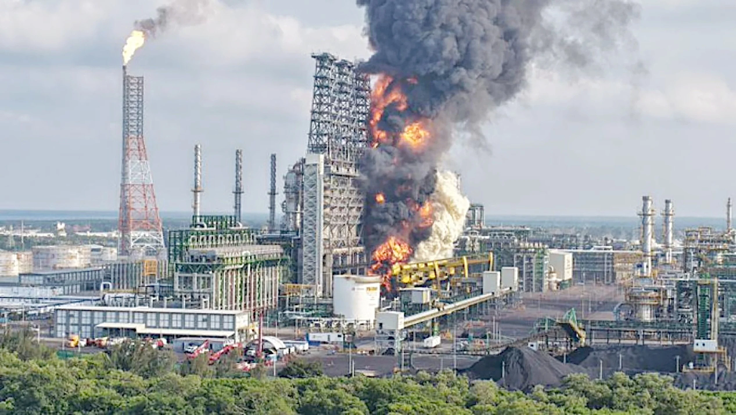 «Se registró un incendio en la bodega de coque en la Refinería Olmeca de Dos Bocas», informó, a las 17:00 horas, Pemex, que descartó lesionados.