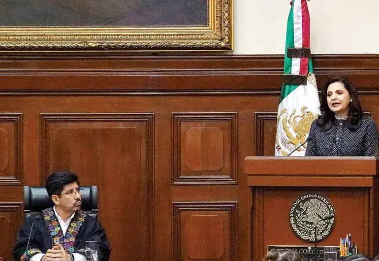 Durante su segundo informe de labores ante el pleno de la Suprema Corte de Justicia de la Nación, destacó que el Tribunal “está de pie y más fuerte que nunca” tras haber cumplido cabalmente con su misión constitucional durante los procesos electorales ordinarios de 2023-2024 y, especialmente, el extraordinario de 2024-2025.