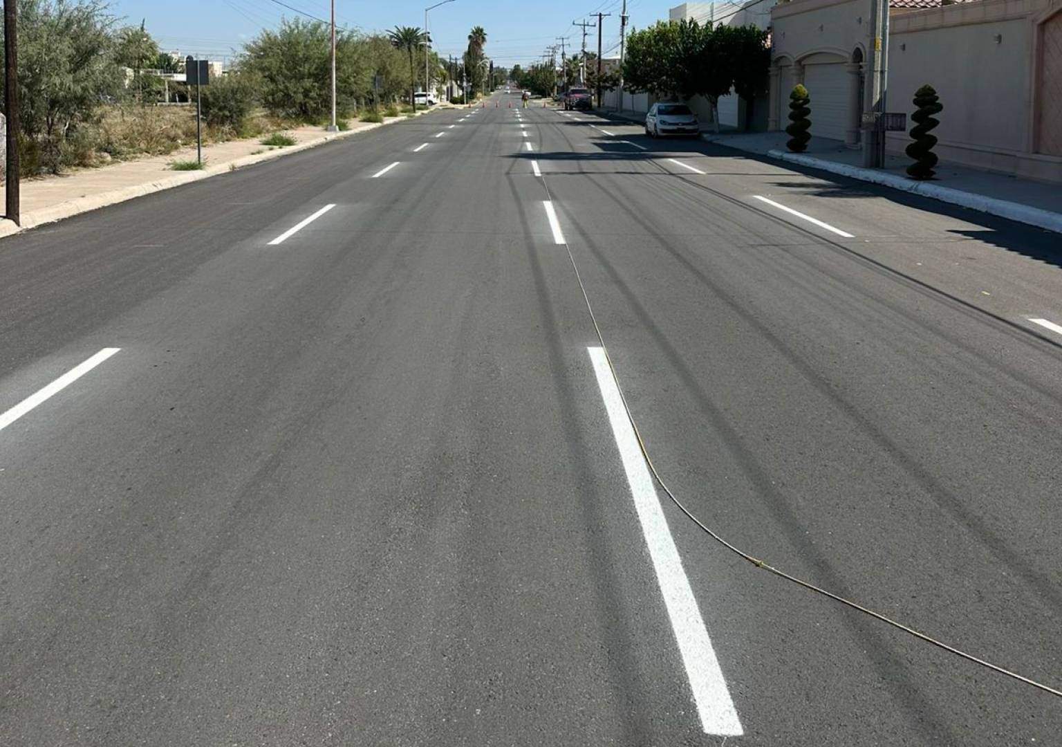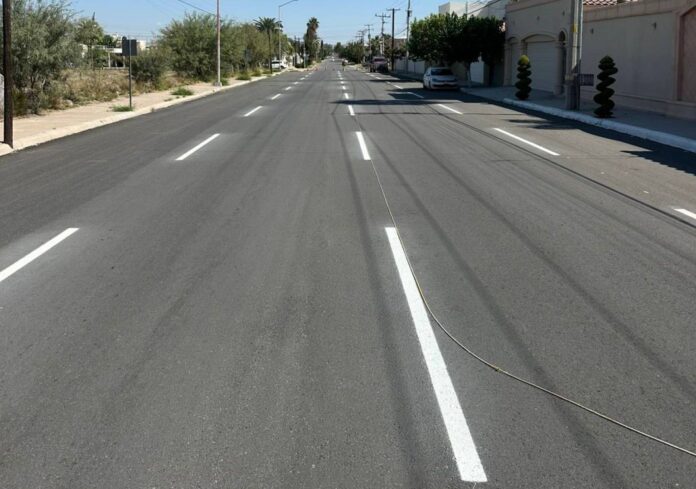 El personal de Obras Públicas del municipio de Delicias está por finalizar los trabajos de pavimentación en la calle Quinta Sur, con la aplicación de la pintura vial. Esta obra es una de las más importantes en la zona, ya que abarca desde la avenida de la Luz hasta la avenida Nuestra Gente, mejorando significativamente la infraestructura vial.