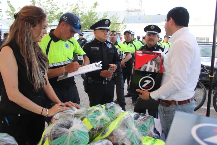 Durante el evento, el personal que vigila principalmente el primer cuadro de la ciudad, recibió la entrega de 30 unidades de bicicletas balizadas (unidades beta), uniformes completos, cascos, botiquines, y demás equipo útil.