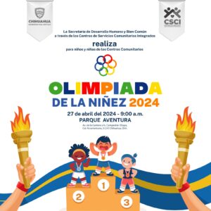 Como parte de las actividades con motivo de la celebración del 30 de abril, los centros comunitarios de la Secretaría de Desarrollo Humano y Bien Común, realizarán la “Olimpiada de la Niñez 2024”, este sábado 27 a partir de las 9:00 horas.