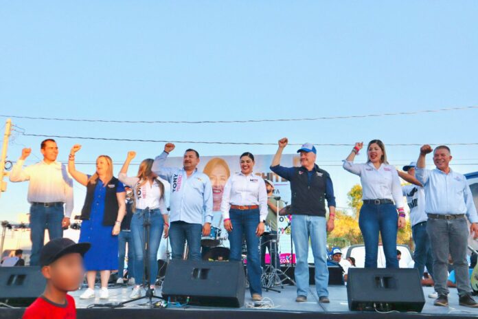 Chihuahua.- Mario Vázquez y Daniela Álvarez, candidatos al Senado por la Coalición “Fuerza y Corazón X México” (PAN, PRI, PRD), estuvieron en el cierre de campaña de los candidatos de la coalición Miriam Soto, candidata a alcaldesa; Juan Pablo Legarreta, candidato a síndico; Ismael Pérez Pavía, candidato a diputado local por el distrito 11, así como el candidato a diputado local por el distrito 5, Tony Meléndez.