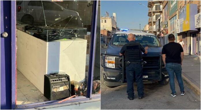 Esto fue durante la madrugada, cuando presuntamente dos personas, a bordo de un automóvil, realizaron los daños al cristal del negocio denominado Presta Express, y después ingresaron para sustraer diversos artículos.